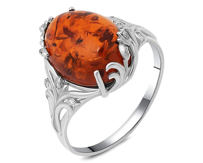Кольцо, арт.656580 Серебро Серебро 925, р. 21, 3,18 гр., янтарь