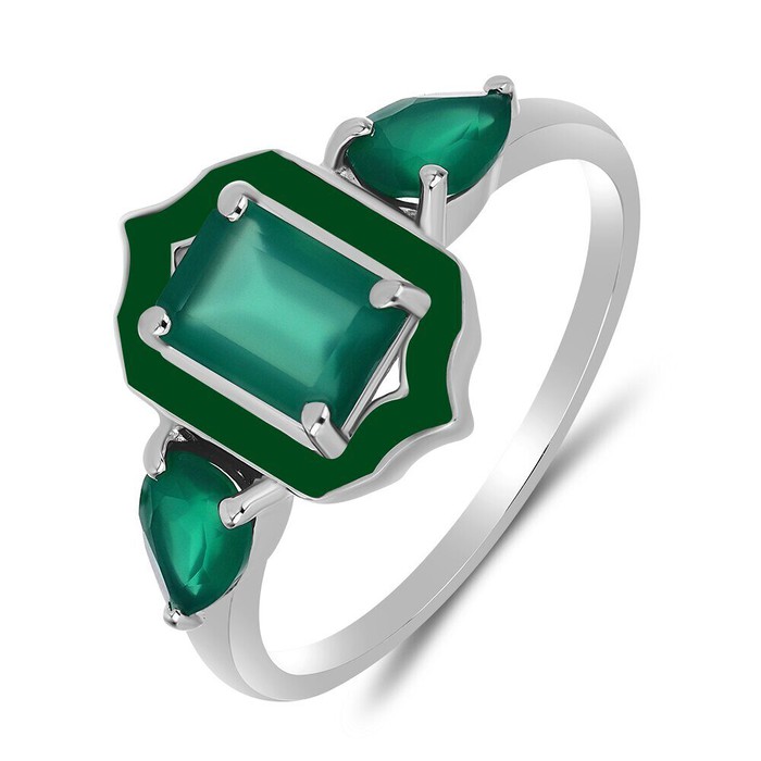 Кольцо, арт.657788 Серебро Серебро 925, р. 19.5, 2,62 гр., зеленый агат , эмаль