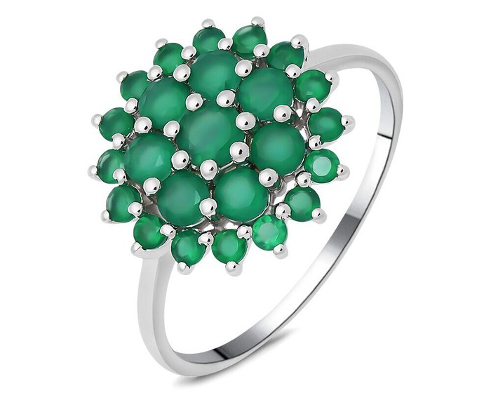 Кольцо, зеленый агат, Ежевичка