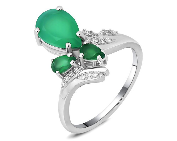 Кольцо, арт.656532 Серебро Серебро 925, р. 19, 3,37 гр., зеленый агат