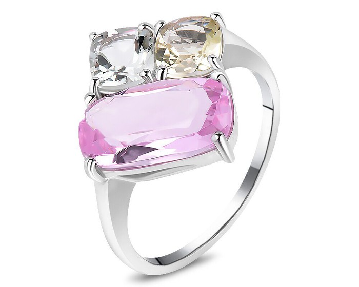 Кольцо, арт.658435 Серебро Серебро 925, р. 20, 3,97 гр., зеленый аметист , лимонный топаз , морганит