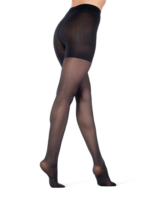 Эластичные колготки 40 DEN с LYCRA двойной обкрутки. С распределенным давлением по ноге, с поддерживающими шортами с LYCRA SOFT. Удобный пояс, хлопковая ластовица, плоский шов.