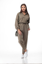 Женственный комбинезон полуприлегающего силуэта. Манжеты рукавов, мини-стойка выполнены из ткани компаньона - кашкорсе в цвет.