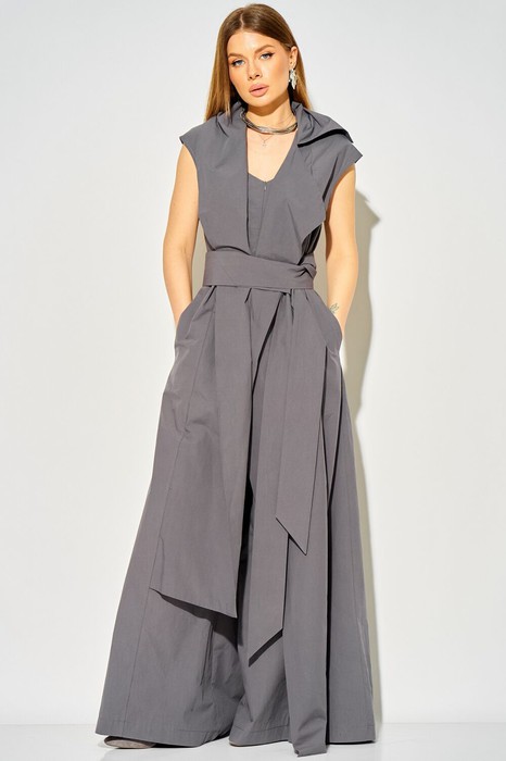 Комбинезон с изящным подрезом на уровне талии подчеркивает фигуру и создает элегантный силуэт. Вырез горловины комбинезона «V-образной» формы. Детали переда с рельефными швами и отлетной деталью добавляют оригинальности и делают комбинезон поистине уникальным. Застежка на потайную тесьму-молнию спереди обеспечивает легкость в надевании. Съемный пояс позволяет вам варьировать стиль: подчеркните талию или создайте более расслабленный образ — выбор за вами! В боковых швах удобные карманы.