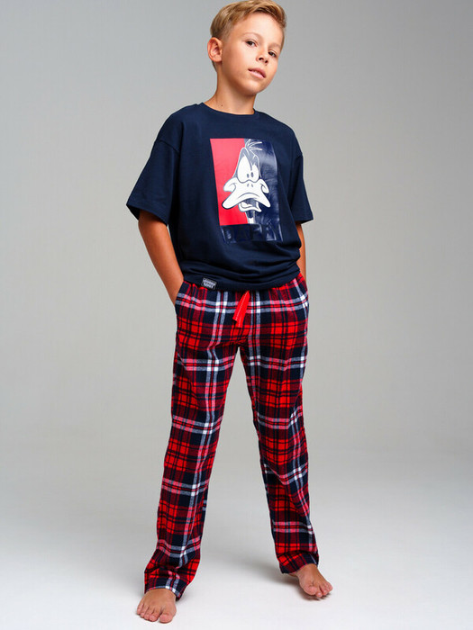 Пижама для мальчика подростка. Футболка из качественного и приятного на ощупь трикотажа джерси с высоким содержанием хлопка 95%. Благодаря наличию эластана в составе ткани изделие проще в уходе и держит форму. Брюки - 100% хлопок. Фланель - мягкая, приятная к телу ткань с небольшим начесом. Эластичный пояс с тесьмой позволяет легко надевать брюки и утягивать до комфортной посадки.