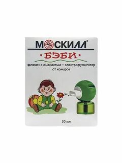 Комплект МОСКИЛЛ БЭБИ: флакон с жидкостью от комаров 30 мл + электрофумигатор