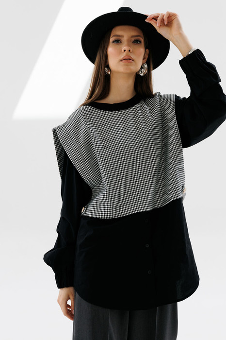 Совместные покупки Симферополь Женская одежда Костюмы, комплекты — Комплект NIKVA н716-1 чёрный+чёрно-белая гусиная лапка