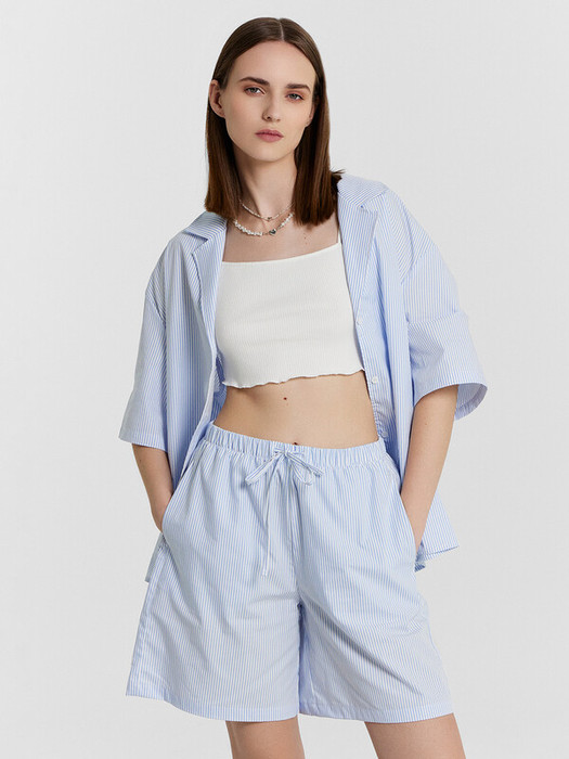 Mark Formelle КОМПЛЕКТ ЖЕНСКИЙ (РУБАШКА, ШОРТЫ) 192011 192011 тонкая синяя полос