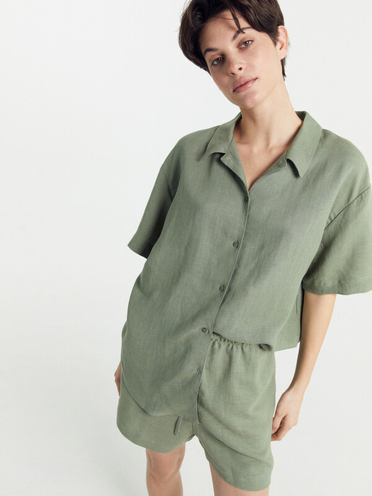 Женская пижама, выполненная из сочетания льна и вискозы. Она сочетает в себе стиль и комфорт, идеально подходя для повседневного ношения дома. Рубашка свободного силуэта с отложным воротником и короткими рукавами имеет центральную застежку на пуговицах, что обеспечивает удобство и легкость в носке. Шорты свободного кроя с высокой посадкой и карманами в боковых швах добавляют практичности и комфорта. Модель выполнена из натурального льна и вискозы. Такое сочетание материалов обеспечивает оптимальный комфорт и долговечность. Лён - это натуральный материал, который обладает отличными дышащими свойствами и дарит прохладу в жаркие дни. Вискоза, в свою очередь, добавляет мягкости и шелковистости, делая изделие особенно приятным к телу. Эта пижама станет вашим любимым выбором для уютных вечеров и расслабленного отдыха дома.