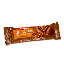 Вместо привычного европейцами миндаля здесь перетёрты ядра сибирского кедрового ореха, смешанные с ягодами клюквы, цельным сухим молоком и покрытые шоколадной глазурью.