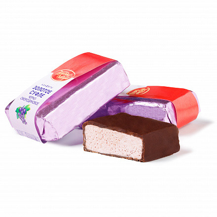 Знаменитое «Золотое суфле» со вкусом черной смородины. Нежное воздушное суфле с добавлением черносмородиновой подварки приобретает особый вкус с тонкими ягодными нотками и освежающим ароматом. Его тающую текстуру покрывает тонкий слой плотной шоколадной глазурью, ломкой и ароматной, придающей «Золотому суфле» изысканную пикантность.