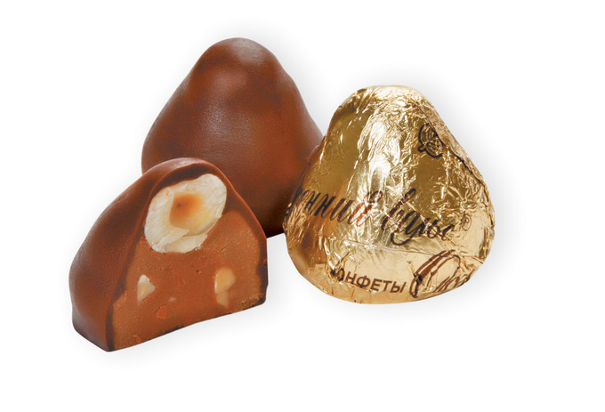 Конфеты «Осенний вальс», фасованные по 250 г – россыпь шоколадных куполов в золотой фольге. Нежное ореховое пралине с добавлением дробленого арахиса с цельным ядром фундука на вершине покрыто ароматной шоколадной глазурью. Изысканный, тающий во рту вкус сладкой осени. Прекрасное дополнение к терпкому вкусу черного листового чая.