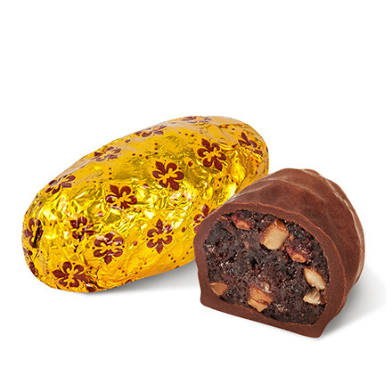 Мякоть ароматного чернослива с кусочками миндаля в настоящей шоколадной глазури.