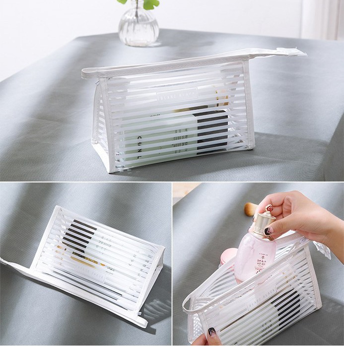 Совместные покупки Симферополь Косметика и парфюмерия Прочий макияж — Косметичка прозрачная силиконовая в полоску. Цвет: БЕЛЫЙ