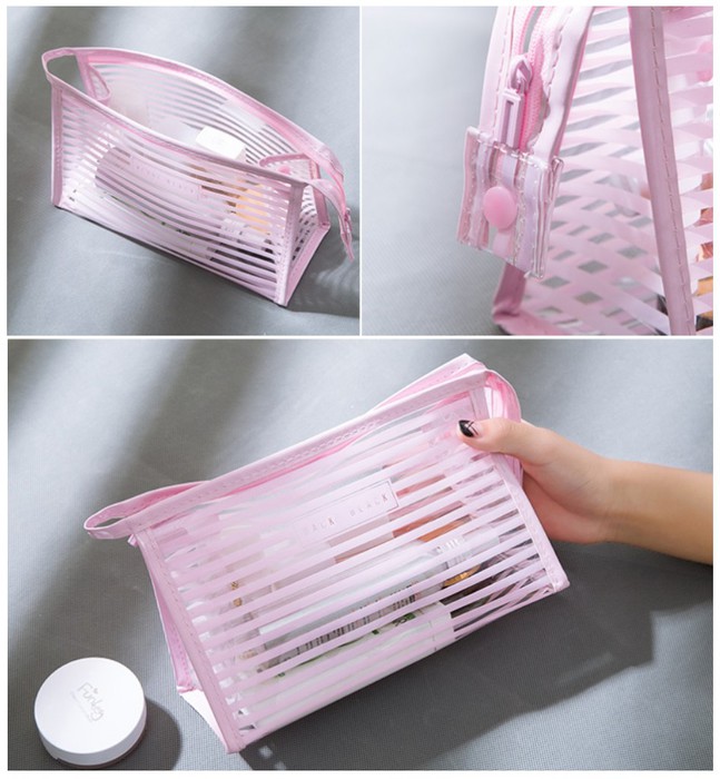 Совместные покупки Симферополь Косметика и парфюмерия Прочий макияж — Косметичка прозрачная силиконовая в полоску. Цвет: РОЗОВЫЙ