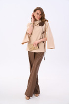 Костюм женский из кулирного полотна состоит из кофты и брюк. Кофта прямого силуэта с двойным капюшоном, люверсами и шнуром. Рукав короткий, втачной, по низу изделия пояс, на полочке принт. Брюки прямые с лампасами из отделочного полотна, верх на поясе с резинкой, низ изделия обработан на плоскошовной машине.