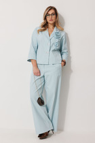 Свитшот со спущенной линией плеча, с фигурным карманом по низу. Вход в карман обработан обтачкой из рибаны. Манжеты, пояс и обтачка горловины из рибаны в тон основного материала. Брюки прямого силуэта, длиной до щиколотки, с поясом на резинке. Данная модель это отличный повседневный вариант, хорошо подойдет для путешествий или активного отдыха на природе.