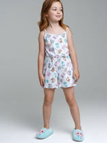 Костюм детский футболка и шорты. Футболка свободного кроя с втачным коротким рукавом горловина округлой формы обработана при помощи узкого воротника. На полочке изделия принт. Низ рукава и низ изделия подгибка. Шорты облегающего силуэта без бокового шва с цельнокроеным поясом и притачной резинкой. Низ изделия подгибка.