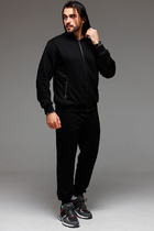 Костюм мужской брюки+футболка. Брюки выполнены из футера, притачной пояс на резинке, карманы с двойной мешковиной, низ подшит. Футболка выполнена из вискозного полотна, оформлена декоративной печатью, горловина обработана обтачкой.
