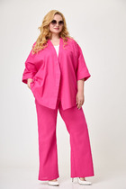 Костюм женский c шортами из кулирного полотна, майка прямой силуэт, горловина круглая, без рукава, низ изделия фигурный, в боковых швах разрезы, горловина, проймы рукава и низ изделия окантованы, на полочке принт. Шорты прямые, верх на поясе с резинкой, боковые карманы, низ изделия обработан на плоскошовной машине.