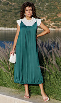 Костюм женский из гладкокрашенного трикотажного полотна в рубчик («лапша»), состоящий из футболки и леггинсов. Футболка – удлиненная, свободного покроя, со спущенной, линией плеча, короткими втачными рукавами, горловиной овальной формы, обработанной втачной планкой.Леггинсы – длиной до колен, с эластичной тесьмой по талии.