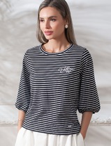 Лонгслив в полоску с рукавами-буфами из премиального хлопка с эластаном