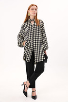 Рубашка свободного силуэта, с центральной бортовой застежкой по переду на петли пуговицы. Воротник отложной стойка. Спинка с кокеткой.
