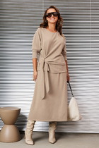 Брюки прямого силуэта с эмитацией запаха на притачном поясе. По переду застежка на тесьму-молнию. По боковым действующие карманы.