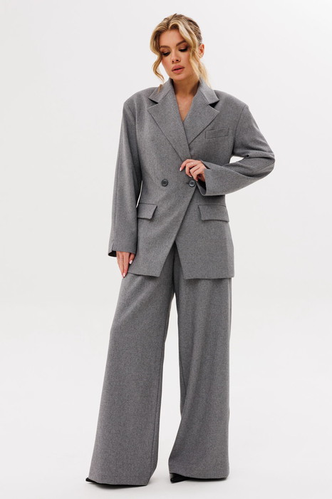 Жакет женский свободного силуэта со спущенным плечом. По переду застежка на две пуговицы. Рукав длинный, по центру рукава декоративный шов с разрезом.