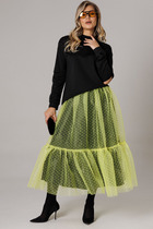 На рост 164 см: длина изделия 56-63 см, длиа рукава 57 см, длина юбки 63 см.