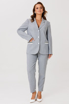 Оригинальный комплект от бренда Anastasia- идеальный выбор для любого случая. Этот комплект сочетает в себе элегантность и комфорт. Комплект женский 2-х предметный (жакет, брюки). Жакет прямого силуэта, на застежку петли и пуговицы. Воротник пиджачного типа, по полочке идут подрезы в шахматном порядке. Плечо спущенное, рукав 3/4 длины, с отложной манжетой которая фиксируется патой. Низ фигурный, спинка цветная. Брюки прямые, пояс на резинке, по бокам карманы. Комплект свободный, удобный. Длина спинки: (50-54)-73 см, (56-60)-76 см. Длина рукава:(50-54)-38 см, (56-60)-41 см. Длина брюк: (50-54)-101 см, (56-60)-105 см
