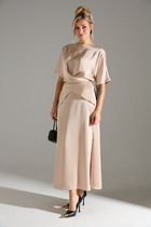 Представляем вашему вниманию стильный и уютный комплект, который станет настоящим маст-хэвом в вашем гардеробе. Классический дизайн в стиле олд мани создает атмосферу расслабленности и уюта, что особенно приятно в прохладные осенние и зимние дни. Этот комплект станет вашим верным спутником в любой ситуации, добавляя нотки элегантности и шарма в вашу повседневную жизнь. Отражает роскошь, придает элегантность и изысканность, будет великолепно смотреться на любой фигуре и привлечет к вам внимание окружающих. Комплект женский 2-х предметный (блузка, юбка).Блузка женская ,прямого силуэта, из трикотажного полотна , со спущенным плечом. Рукав "летучая мышь", 3/4 длины. Горловина цельнокроенная в виде стойки. Юбка из фактурной ткани в рубкик с принтом гусиная лапка - теплая, плотная и качественная, практически не мнется. В верхней части идут складки: по центру-встречная, по бокам - односторонние. Пояс отрезной, по бокам карманы. Застежка по спинке на потайную молнию и пуговицу. Юбка на подкладке. Отдельные части комлекта будут легко сочитаться с вещеми из вашего гардероба. Длина блузки(по спинке): (50-56)-65 см. Длина рукава от головины: (50-56) -56 см. Длина юбки - 72см.