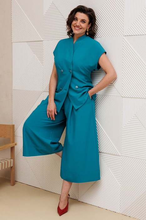 Бренд белорусской женской Anastasia представляет костюм двойку. Костюм женский 2-х предметный (жилет, юбка-брюки) из костюмной ткани станет отличным дополнением к Вашему гардеробу. Подойдет для повседневной носки (работа, офис, прогулки). Достаточно дополнить его соответствующими предметами из вашего гардероба: блузка, майка, водолазка, гольф, свитер, лонгслив, свитшот. Или акссесуарами: ремешок или пояс. Жилет полуприлегающего силуэта, со спущенным плечом. Может быть самостоятельным элементом гордерба. Застежка двухбортная. Воротник цельнокроеная стойка. По полочке идет грудовая выточка из бокового шва, по спинке средний шов. Трендовая юбка-брюки. По передней части идут встречные складки (центральная и две боковые). Пояс отрезной, по бокам резинка. Застежка – потайная молния по шву сидения по спинке. По бокам - карманы. По низу брюк – широкая подгибка. Акцентный элемент- пуговицы. Благодаря своему крою и фасону костюм подчеркивает женственные формы и скрывает то, что должно быть незаметным. Это повседневный вариант на каждый день для занятий в школе или для офиса, на работу или на прогулку. Наденьте его на деловую встречу, официальное мероприятие, школьное торжество. Модель подойдёт для образа в университет или колледж. Одежда для женщин по отличным ценам и высокого качества - это Anastasia! Добавляете нас в любимые бренды и вы всегда будете в курсе всех акций и новинок! Хороших покупок от «Анастасия». Длина по спинке (48-52)-72см, (54-58)-74 см. Длина юбки-брюк (48-58) - 85см.
