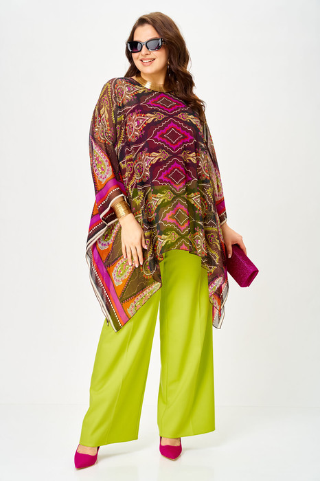 Оригинальный комплект тройка от бренда Anastasia - идеальный выбор для любого случая. Комплект женский 3-х предметный (туника, топ, брюки)   станет акцентным дополнением к вашему гардеробу.  Отлично подойдет как для повседневной носки (работа, офис, прогулки) , так и для праздничных выходов ( свадьба, корпаратив, выпускной). Достаточно дополнить его соответствующими аксессуарами. Предметы комплекта легко будут сочетаться с вещами из Вашего гардероба. Туника из купонной шифоновой ткани.  Топ на регулируемых брителях из трикотажного полотна "масло". Брюки со стрелками прямые, пояс на резинке, по бокам карманы.  Длина туники  (50-60) 75см. Длина рукава от горловины: (50-60) - 60 см. Длина топа по спинке (50-54) - 41 см, (56-60) - 43 см.  Длина брюк: (50-54) - 102 см, (56-60) - 105 см