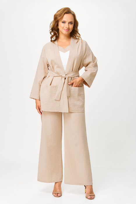 Комплект состоит из топа, брюк и жакета. Жакет и брюки выполнены из однотонной ткани. Топ выполнен из однотонной ткани, контрастной по цвету .