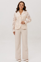 Костюм женский, состоящий из блузки и юбки. Блузка прямого силуэта с воротником «шаль». Перед с нагрудными вытачками и складкой по середине. Рукав втачной одношовный со складками и манжетами по низу. Блузка со съемным поясом с пряжкой. Изделие без подкладки.