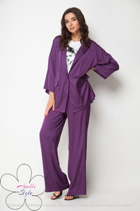 Пижамный комплект для уверенных в себе женщин, которые смело могут пойти в нем, как на работу, так и на свидание или прогулку. Жакет прямого силуэта, со спущенной линией плеча, рукав расширен по низу и укорочен, для вашего удобства. По переду накладные карманы, классический воротник с лацканом. Застежка на петлю пуговицу. Съёмный пояс декорирован. Брюки прямые расширенные к низу. Пояс на резинке, поэтому брюки будут на вас сидеть хорошо, вне зависимости от того, похудели ли вы или немного выросли в объемах.
