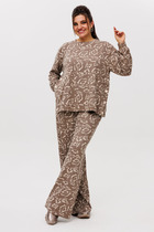 Трикотажный костюм от Анелли  с анималистичным, ярким принтом – это идеальное сочетание стиля и комфорта для повседневного гардероба. Он включает в себя просторные брюки палаццо на круговой резинке, что обеспечивает удобную посадку и легкость в движении. Благодаря свободному крою и функциональным карманам, брюки смотрятся элегантно и практичны в носке.
