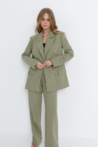 Свитшот с втачным рукавом дополняет комплект, а функциональные кнопки по бокам не только украшают изделие, но и позволяют регулировать его силуэт по своему желанию.