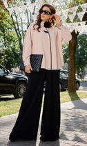 Облекая фигуру в идеальную посадку, костюм дарит непревзойденное ощущение комфорта и свободы. Брюки, мягко ниспадающие изящными складками, обнимают талию благодаря эластичному поясу, создавая безупречный силуэт, который подчеркивает вашу естественную элегантность. Жилет, с его четкими линиями и структурным силуэтом, скрывает дерзкую деталь — яркую подкладку, которая становится вашим маленьким секретом и вспышкой индивидуальности.
