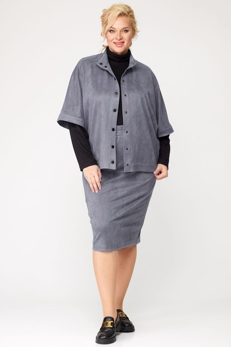 Жакет свободного кроя, без подкладки. Воротник - стойка. По переду центральная застежка на кнопки. По низу жакета - манжет. Рукав цельнокроеный короткий, по низу - манжет.
