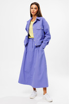 Комплект состоит из джемпера и юбки выполнен из фактурного полотна с принтом. Характеристики: джемпер укороченный, прямой крой, горловина овальная широкая, рукав прямого кроя, низ изделия заканчивается резинкой. Длина по спинке 39 см, длина рукава от края горловины 73 см. Юбка прямого кроя, подкладка, пояс на резинке. Длина юбки 85 см.