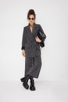 Этот 2-х предметный комплект состоит из корсетного топа и брюк. Корсетный топ с открытыми плечами — воплощение чувственной элегантности. Открытые плечи подчеркивают линию шеи и ключиц, а корсетный крой создает безупречный силуэт. Роскошный силуэт и акцентная баска делают его идеальным выбором для особенного вечера. Также топ отлично вписывается в повседневные образы.
