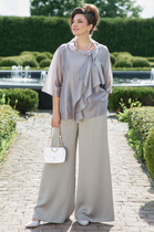 Этот 2-х предметный комплект состоит из корсетного топа и брюк. Корсетный топ с открытыми плечами — воплощение чувственной элегантности. Открытые плечи подчеркивают линию шеи и ключиц, а корсетный крой создает безупречный силуэт. Роскошный силуэт и акцентная баска делают его идеальным выбором для особенного вечера. Также топ отлично вписывается в повседневные образы.