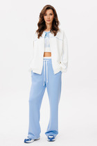 Этот 2-х предметный комплект состоит из жакета и брюк. Жакет - настоящая жечужина в гардеробе. Небанальный вариант застёжки сбоку на лицевой стороне, и потайной пуговицей внутри изделия придаёт жакету характер, подчёркивает силуэт и линию талии. Жакет выгодно акцентирует фигуру, создавая утончённый и женственный образ. Благодаря декоративным рюшам из вуали, он легко станет центральным элементом образа. Карманы с клапанами. Брюки станут глотком свежего воздуха среди широких силуэтов и брюк палаццо. Их облегающий крой подчёркивает линию бедёр и тали, а затем изящно расклешается от колена.Такой фасон позволит скорректировать фигуру и подойдёт для строго дресс кода. Вертикальные линии по центру брючин вытягивают силуэт и удлиняют ноги. Застёжка классическая - молния и пуговица в цвет изделия.