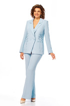 Этот 2-х предметный комплект состоит из жакета и юбки.   Стильный жакет в элементами барокко. Защипы по окату пукава придают вышность и грацию. Притачная баска создают силуэт, где четко прорисована талия и скрыта линия бедер. Баска при движении создают струящиеся мягкие складки. Воротник-стойка с застежкой на пуговички в тон изделия придают утонченность и хрупкость фигуре.                                                                 Юбка. Офисный стиль может быть безумно притягательным. Длина мини, кокетливый разрез по среднему шву задней половинки юбки, прилегающий силуэт подчеркнет достоинства фигуры