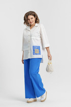 Комплект женский состоит из блузки и брюк.