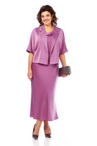 Комплект женский состоящий из блузки и юбки. Блузка прилегающего силуэта, отрезная по линии талии, вырез горловины-круглый, рукав 3/4 со складками по окату, застежка по спинке на пуговицы, изделие на подкладке, со съемным посом. Юбка прямая, зауженная к низу, на обтачке, застежка сзади на молнию, в среднем шве заднего полотнища-шлица, изделие на подкладке.