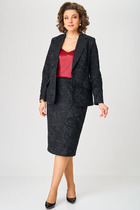 Комплект женский, состоящий из жакета и брюк-капри. Жакет прилегающего силуэта с застёжкой спереди на петли и пуговицы, с воротником отложным с лацканами, с карманами по переду, с втачным рукавом. Изделие на подкладке. Капри длиной за калено, узкие на поясе, с застёжкой спереди на молнию и пуговицы, с карманами, с разрезиками по низу боковых швов.