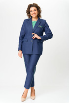 Комплект женский, состоящий из брюк и туники. Туника свободного рубашечного покроя со спущенной проймой и 3/4 рукавом. Застёжка спереди на пуговицы, с боковыми разрезами. Брюки свободные прямые на поясе частично с эластичной тесьмой, с боковыми карманами.